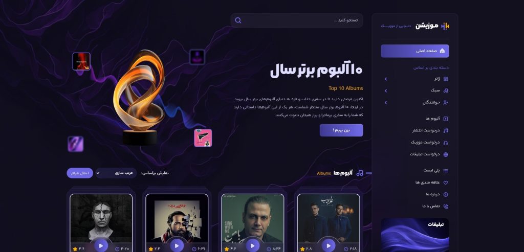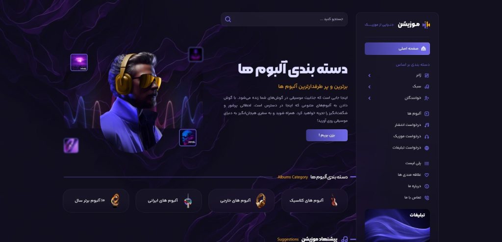 - ساختار داینامیک محتوا: بهرهگیری از تکنولوژی JetEngine برای مدیریت حرفهای دستهبندیها (سبک، ملیت، هنرمندان و آلبومها).